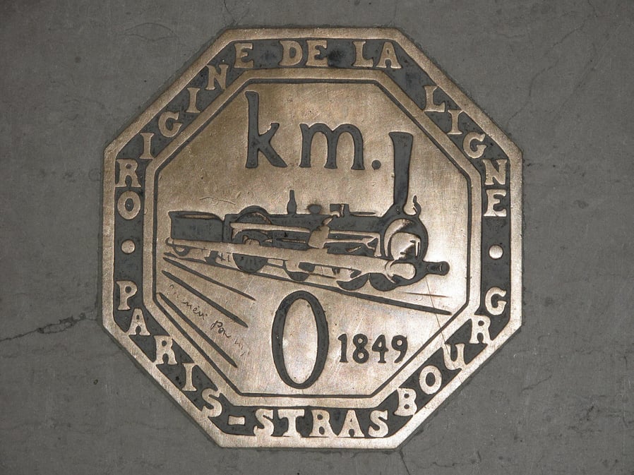La gare de l’Est de Paris est construite en 1849. Ne vous y méprenez pas, il s’agissait là d’un petit hall composé de deux rails uniquement qui accueille seulement 10 trains par jour. Elle permet néanmoins de relier Paris à Strasbourg, une grande première. La gare est inaugurée officiellement en 1850 par le Président de la République, Louis-Napoléon Bonaparte. Pour marquer le coup, on décide d’incruster une médaille dorée dans le sol du quai principal. Symbolique, ce médaille représente le point kilométrique zéro de la ligne reliant Paris à l’Alsace. Une belle médaille sur laquelle où l’on peut voir la locomotive à vapeur Crampton n°80, à la mode de l’époque. Depuis, la gare de l’Est n’a cessé d’évoluer et de s’agrandir, mais la médaille, elle, est toujours là !